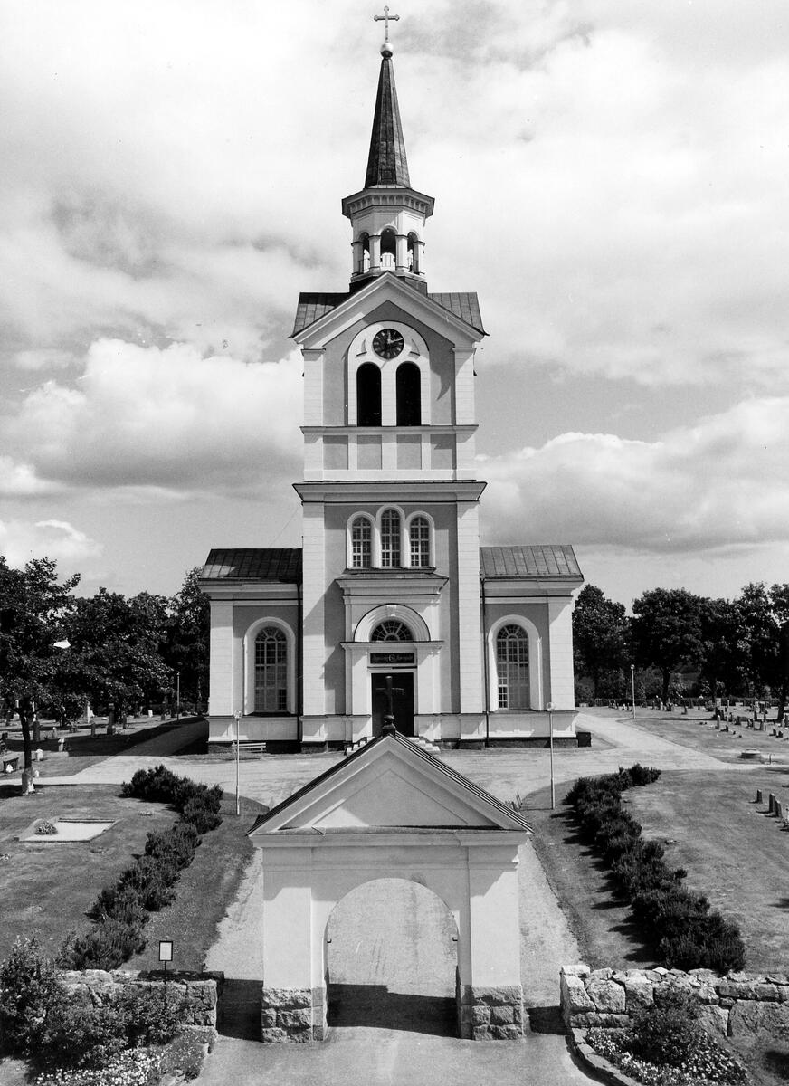 Njurunda kyrka sedd från sockenstugan. Kyrkan ligger strax intill Medelpads näst största gravfält. Upp till kyrkan leder två vägar kantade av kyrkstallar. 1862 uppfördes kyrkan under ledning av byggmästare J. Nordell, arkitekten var Johan Fredrik Åbom. Kyrkan invigdes den 30 april 1865 av biskop A.F. Beckman. Kyrkorummet är en treskeppig basilika. En genomgripande restaurering utfördes på 1990-talet. Kyrkan består av ett klocktorn, ett stort rektangulärt långhus och ett polykront kor. Sakristia och arkivrum ligger inom långhuset i nordöst respektive sydöst. kyrkan är putsad och byggd i sten förutom det förhöjda mittskeppet och korets förhöjda del.