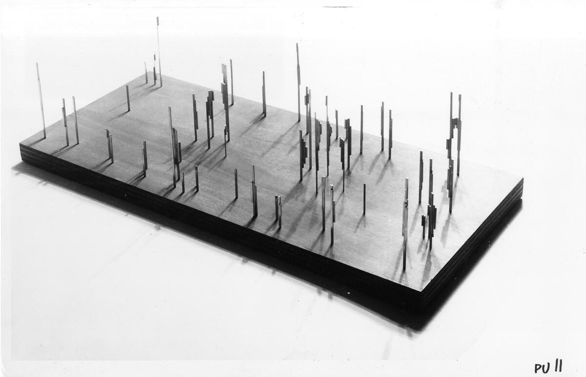 Konstverk, "Piazza", mässing, mahogny.