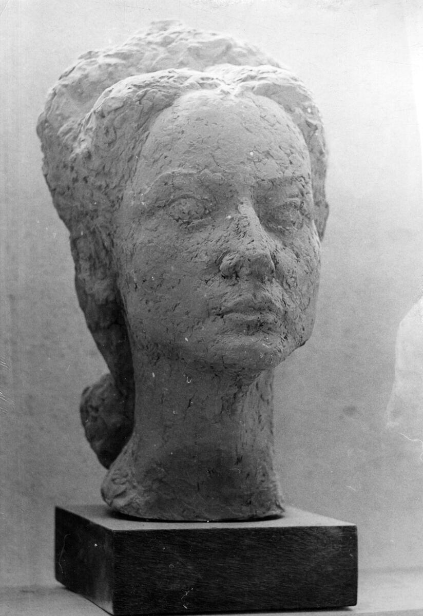 Skulptur och porträtt av fru Engström.