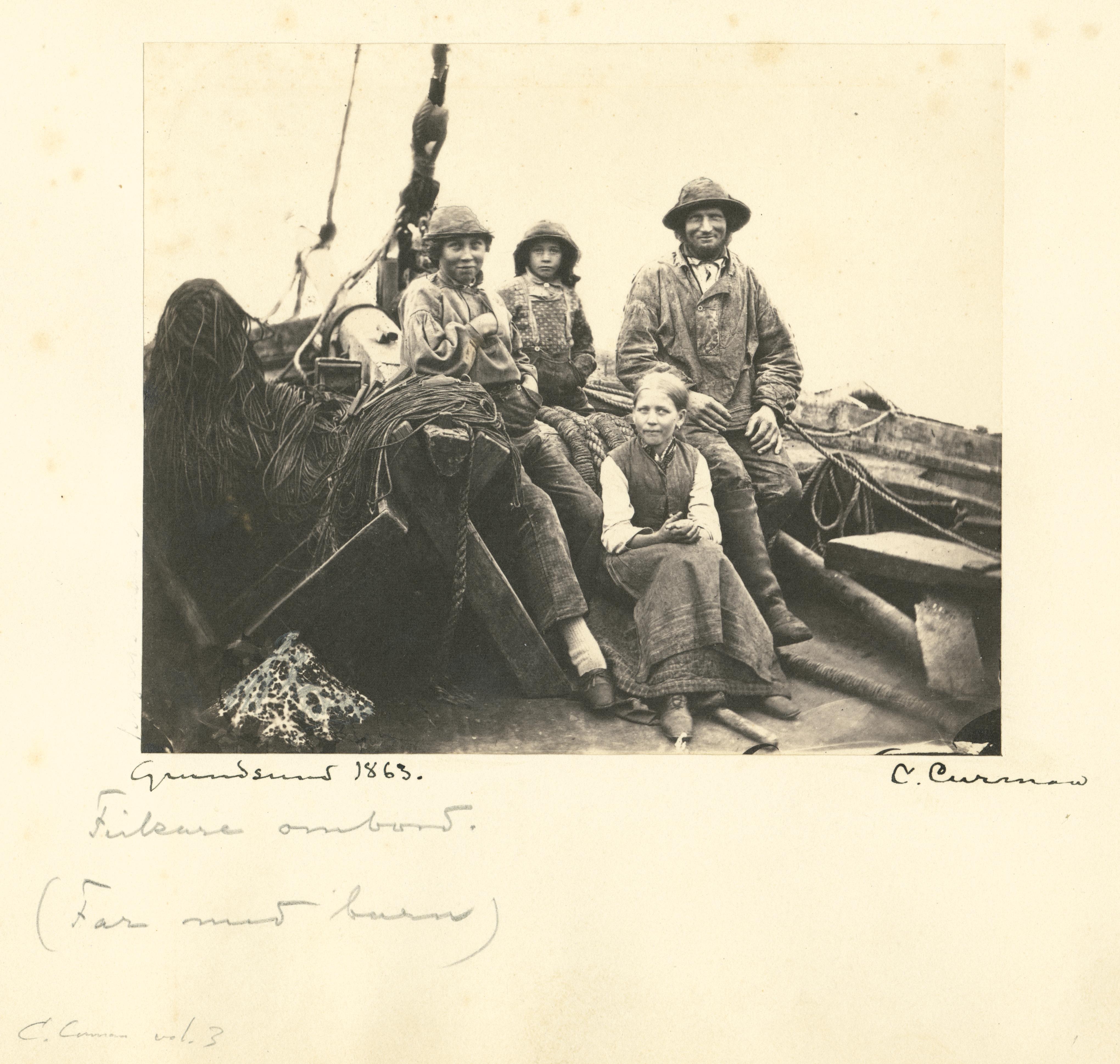 Motiv från en fiskebåt. "Fiskare ombord". "Far med barn"