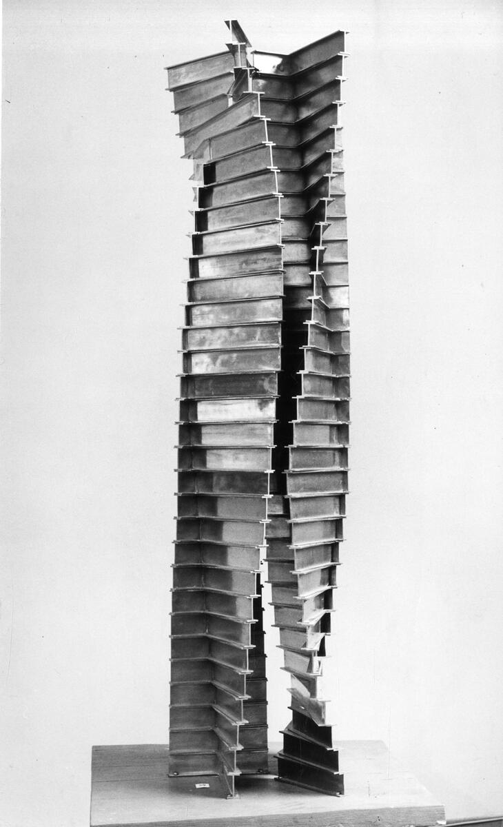 Skulptur, Mänsklig byggnad. Uppförd 10 meter rostfritt stål utanför Tekniska högskolan i Luleå 1973.