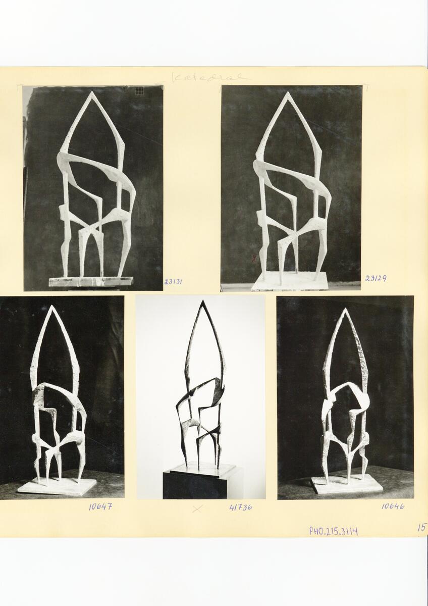 Bilder av en skulptur, av försilvrad brons, Katedral.
