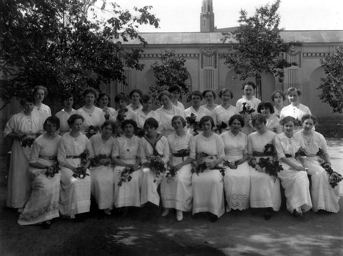 Flickskoleelever. Doc. Ernst G. Walgrens hustru Marit f. Amnell står 5:a från höger.