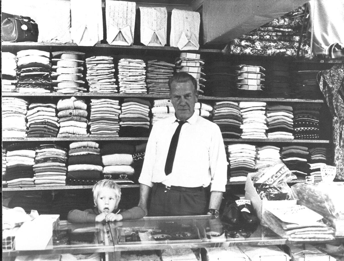 Interiör från Tore Asplunds affär i Prästmon. Ägaren vid disken.
