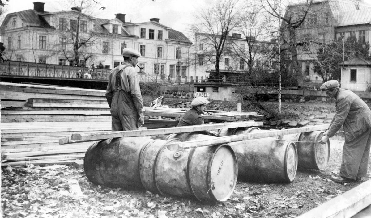 Provisorisk pontonbro byggs när gamla kanalbron rivs.