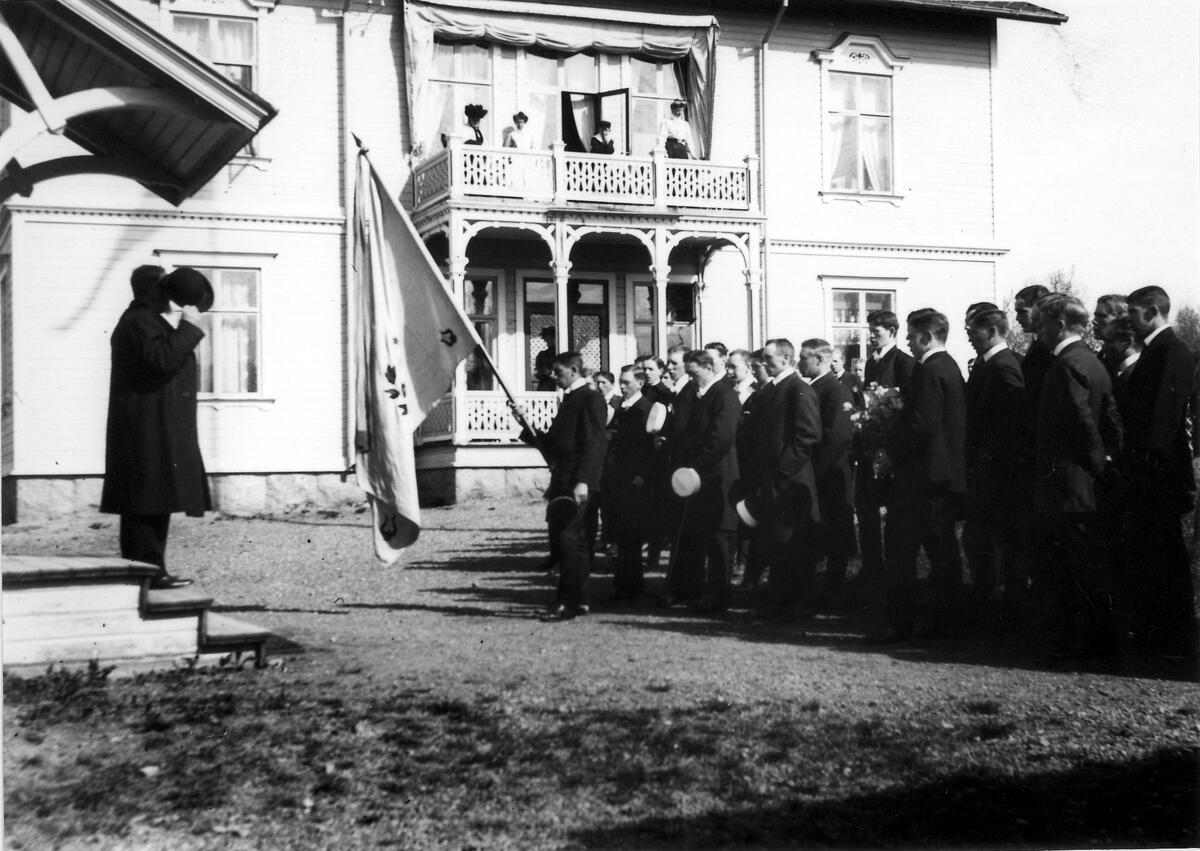 Titel: Rektor Henrik Jacobsson uppvaktas av studenter och gymnasister.