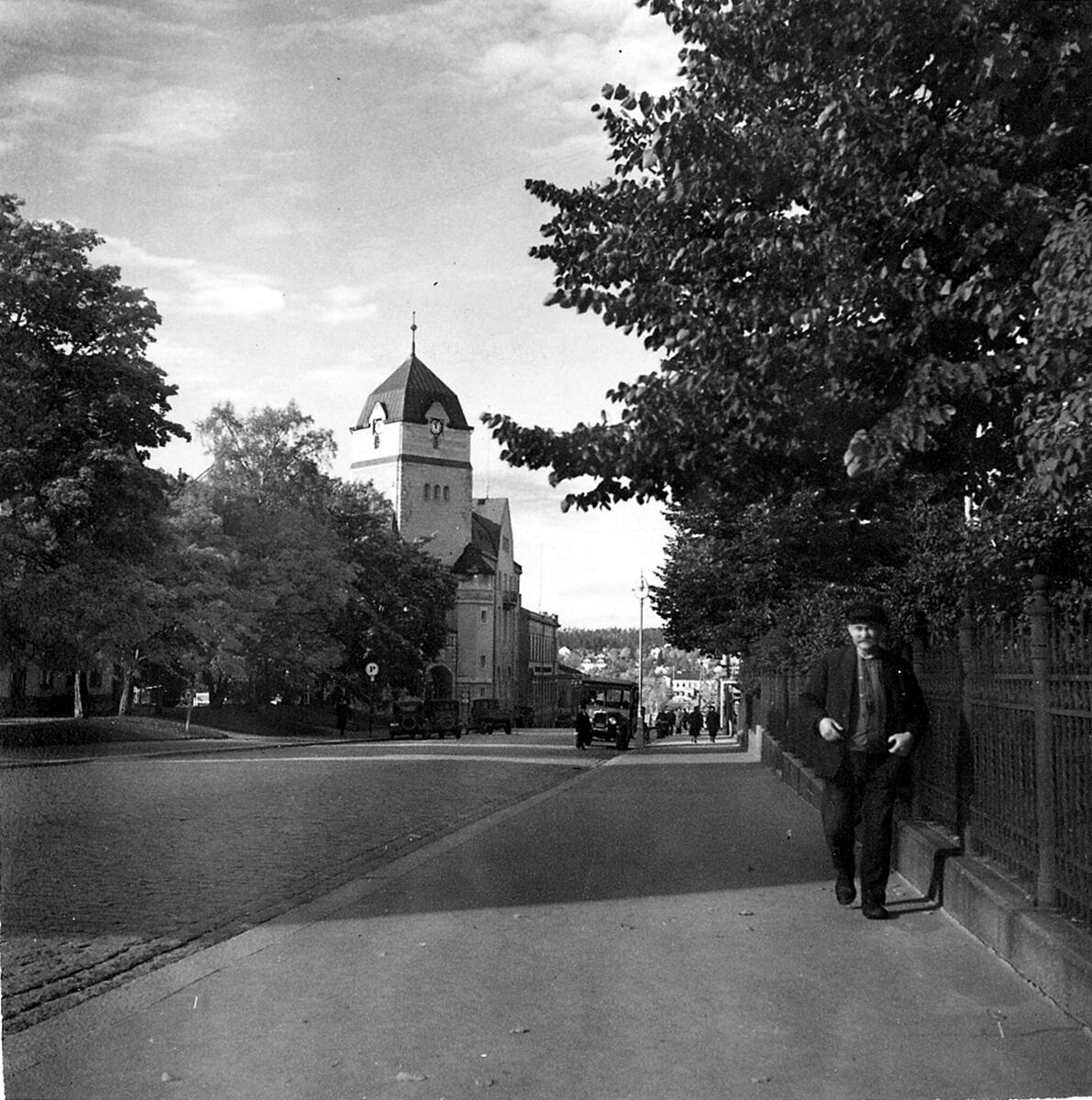 Vaktmästare Gustav Lindström från Murberget på promenad på Nybrogatan.