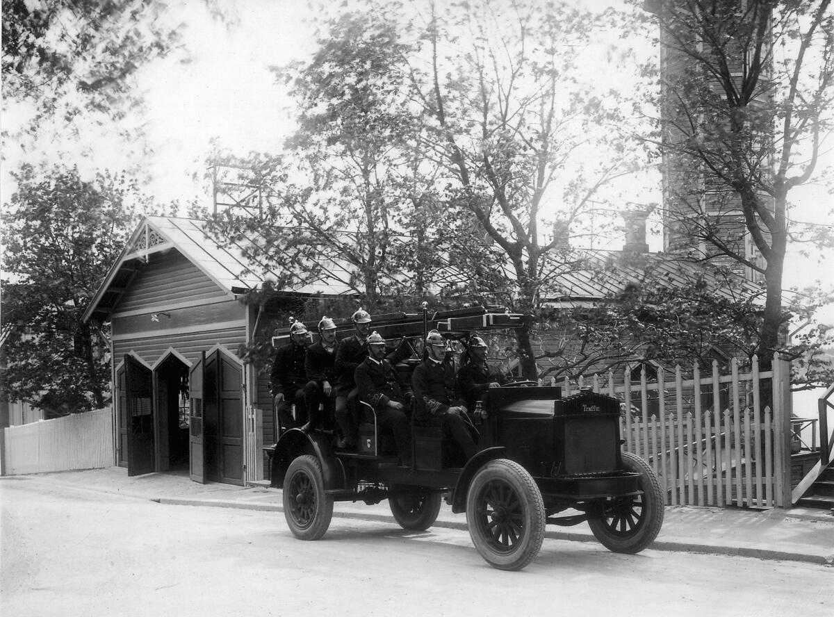 Utanför gamla brandstationen.