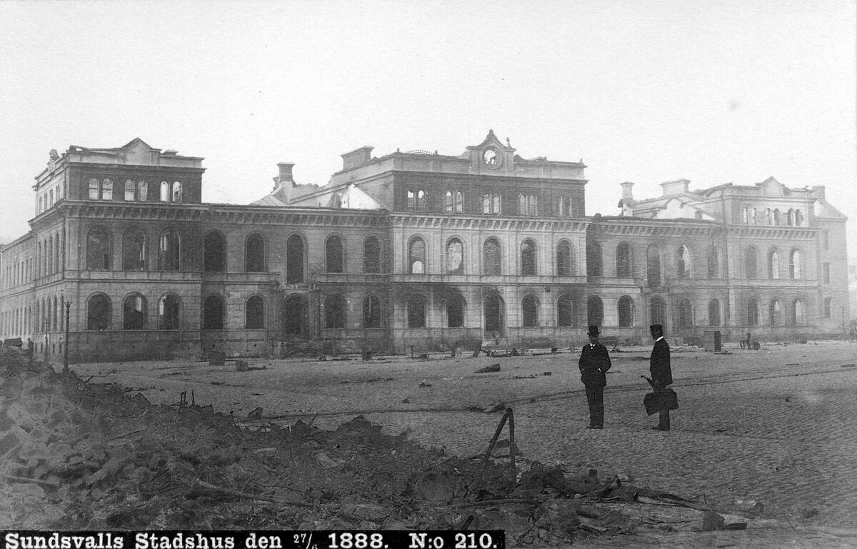 Sundsvalls stadshus efter branden.