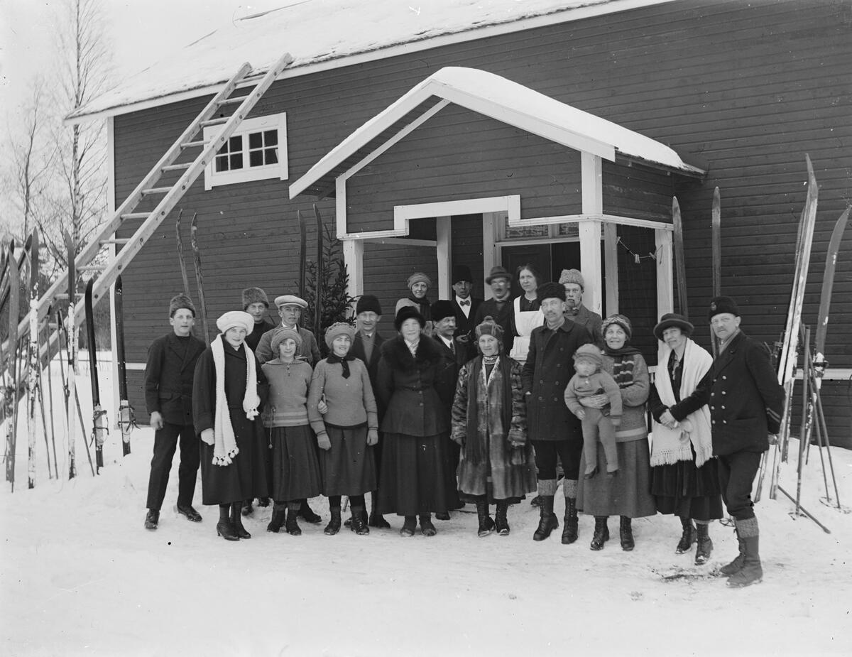 Längst till höger vid stolpen i pälsmössa Erik Svanberg