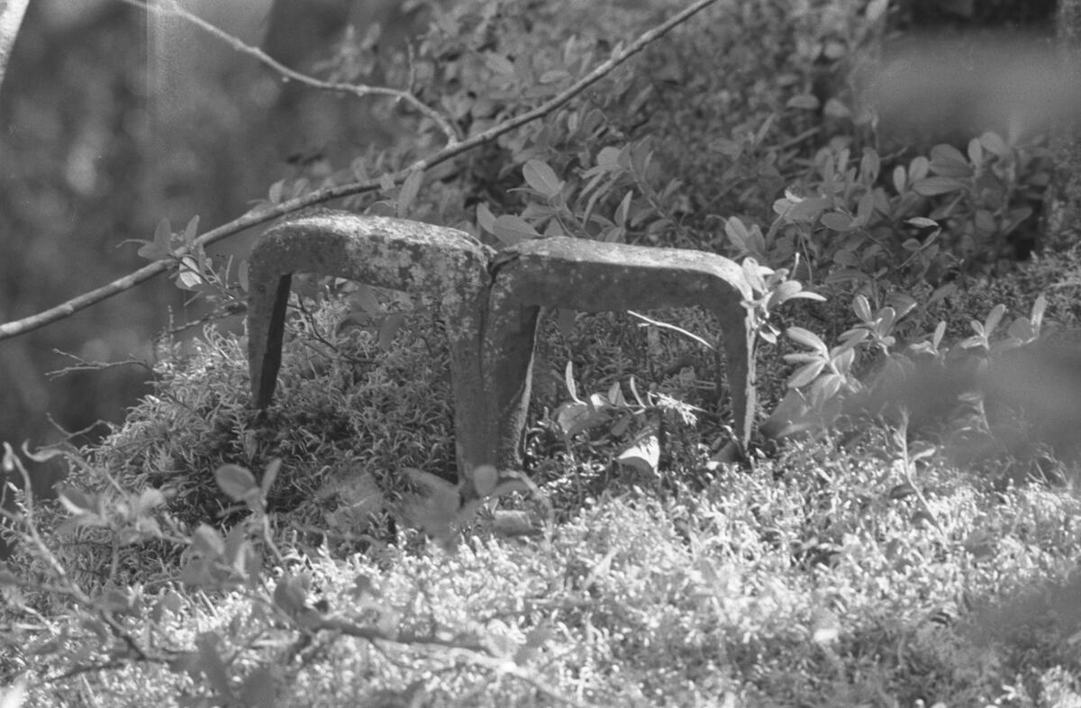 Kilströmmens nedre del. Fästanordning, böjda fyrkantsjärn nedslagna i sten.
