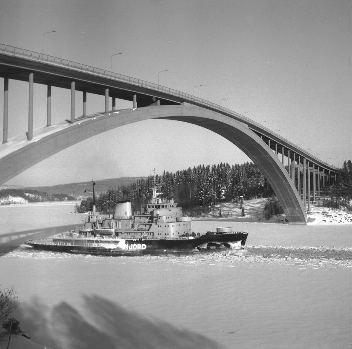 Titel: Fartyget Njord vid Sandöbron