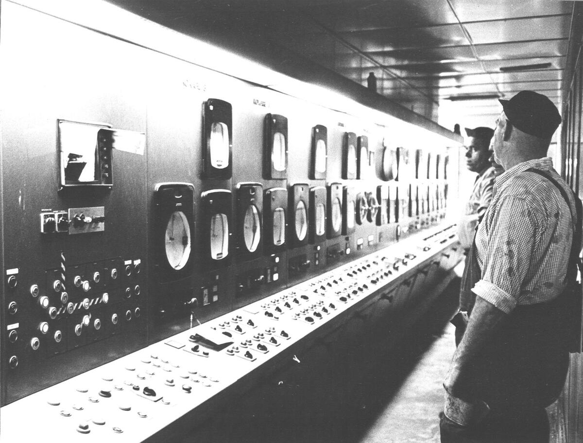 Väja. Manöverpanel på kokeriet. Manfred Sahlén, Bengt Bohman och Bert Dahlman.