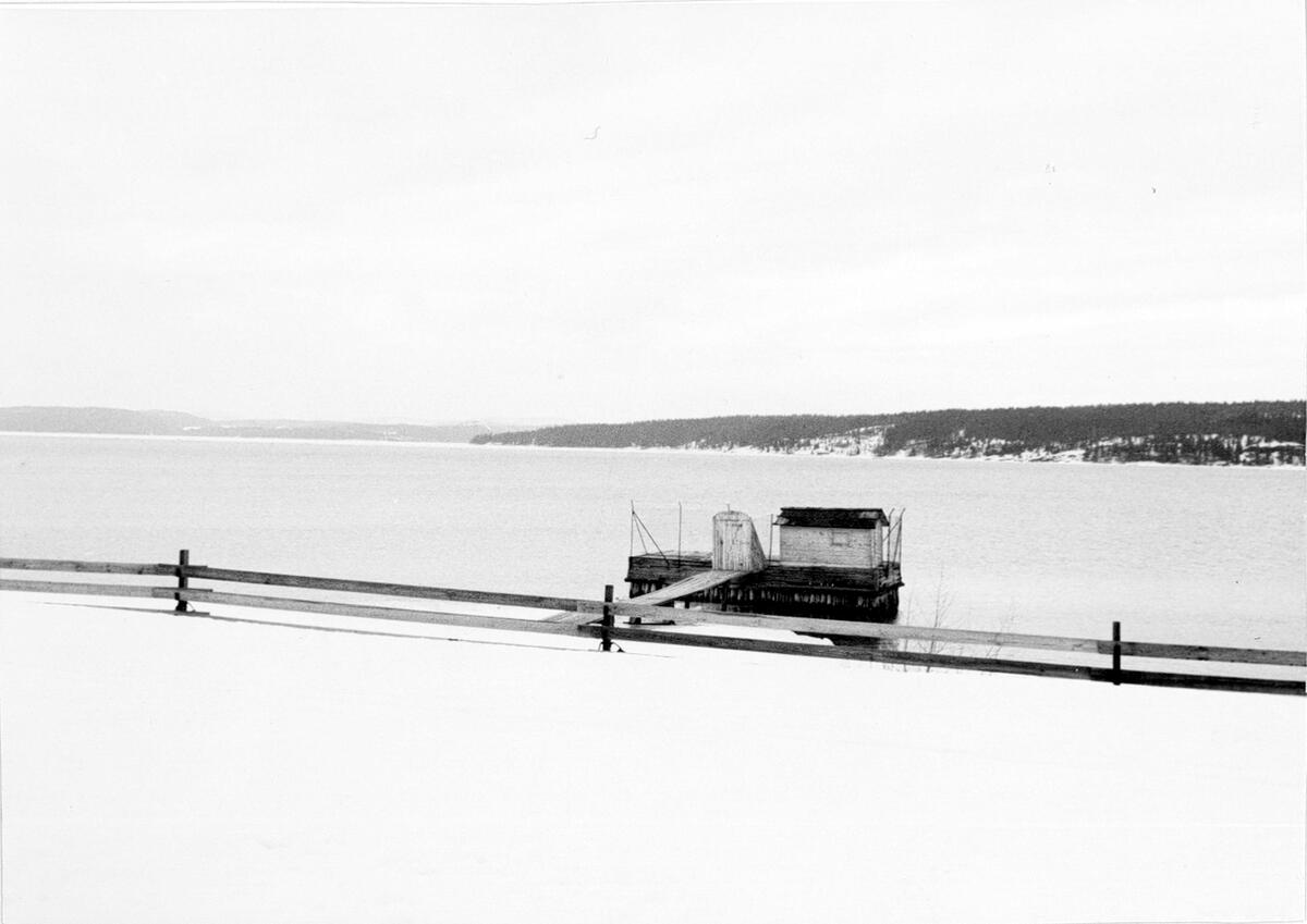 Villa Fridhem på Sälsten. Fridhems brygga och badhus. Vinterbild.