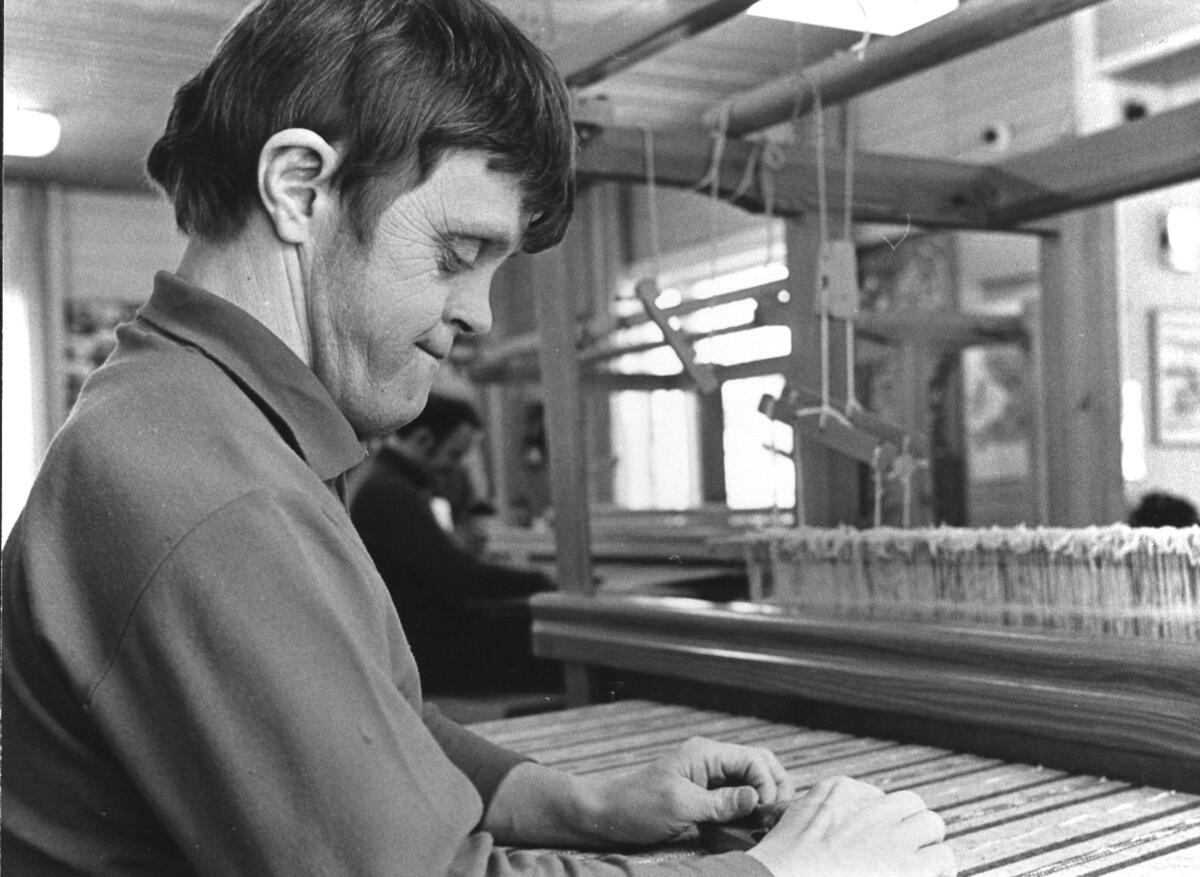Landstingets vårdhem "Falks" i Hammar. Interiör från vävsalen.
