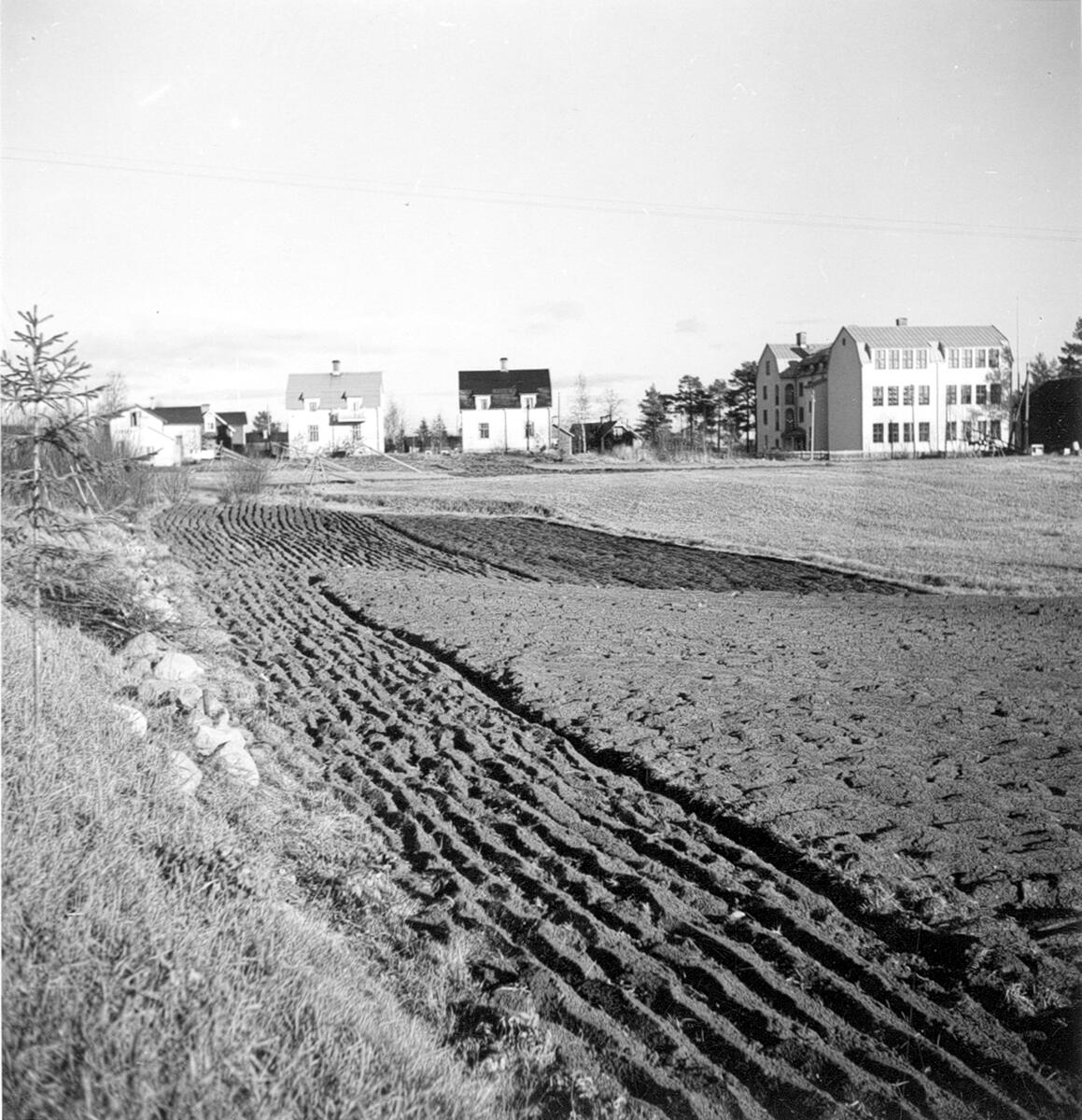 Hälledals skola, längst till höger i bild, revs när Högsjögården skulle byggas.