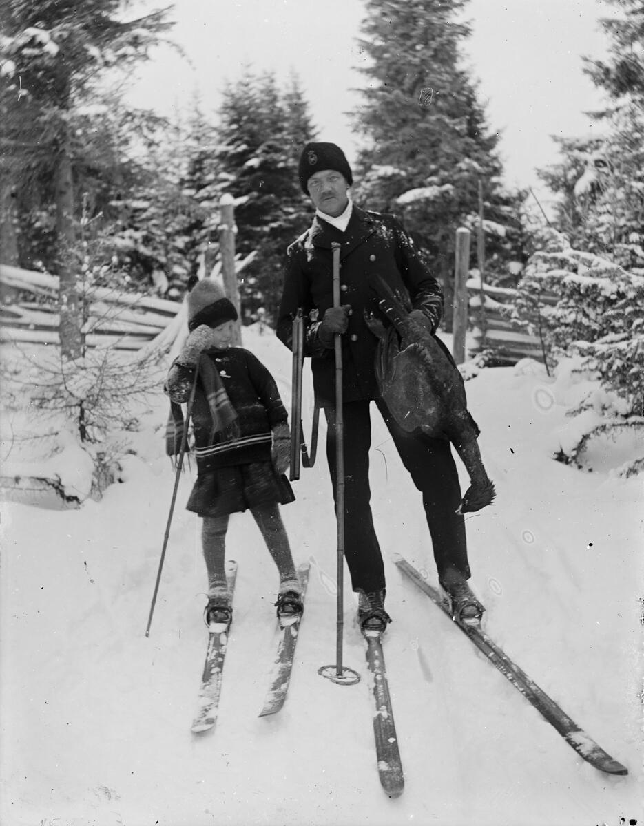 Skidåkande man och barn