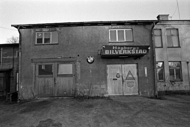 Titel: Högbergs bilverkstad; Kvarteret Briggen 4, fasad mot Nordväst