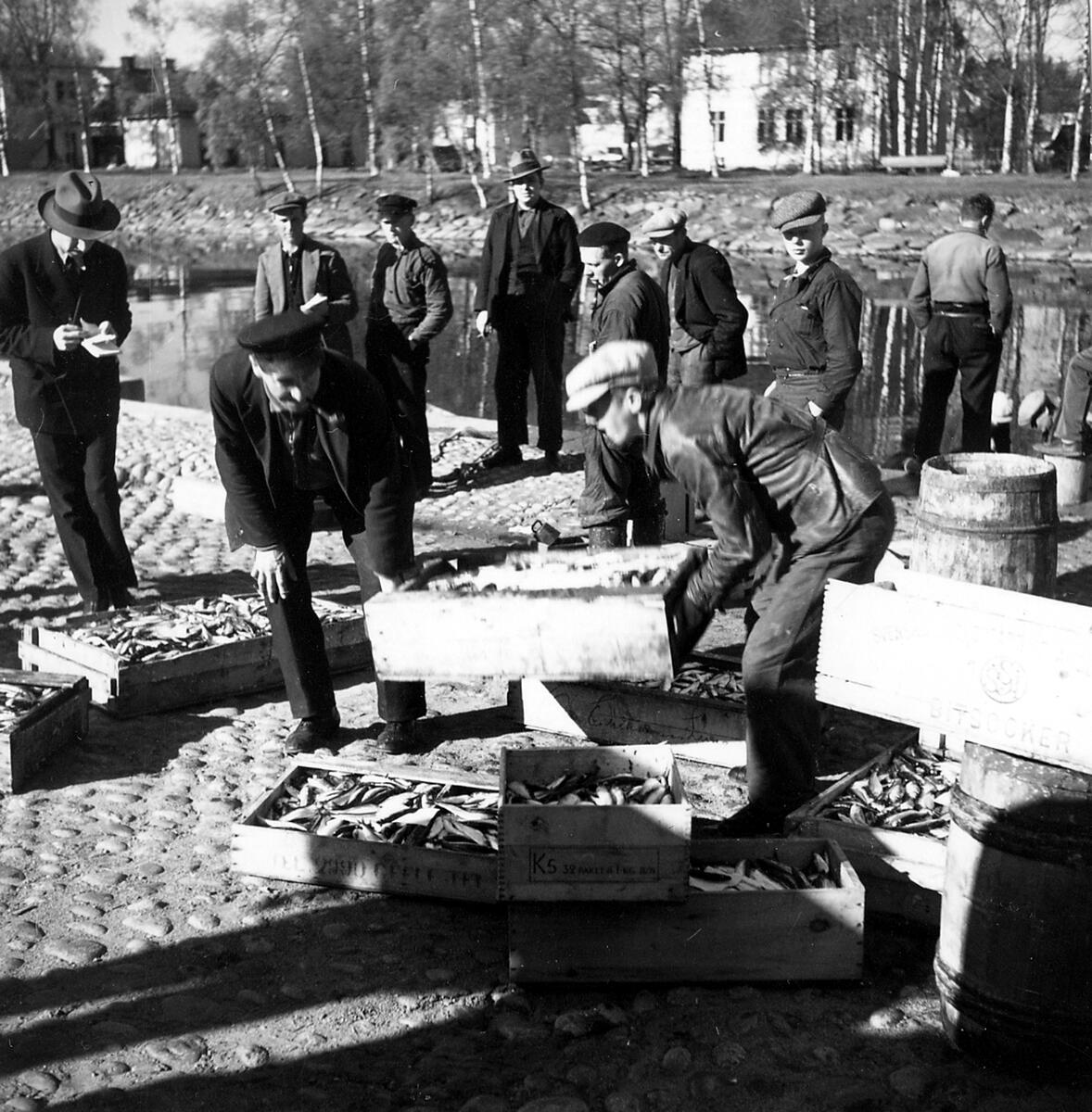 Fisktorget bakom gamla polishuset, i bakgrunden Mellanholmen