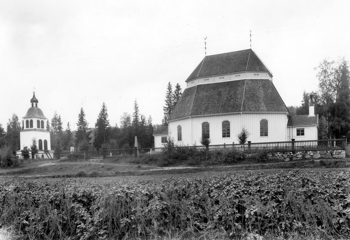 Viksjö kyrka. Kyrkan uppfördes 1927-28, sedan det gamla brukskapellet från Västanå genom vådeld brunnit ner till grunden den 8 februari 1926. Efter ritningar av arkitekt David Frykholm i Härnösand uppfördes den nuvarande kyrkan av timmer av byggmästaren J. Wiklander. Flera av de gamla kyrkstallarna finns bevarade.; Kyrkan har en stomme av liggtimmer. Planen är åttkantig, med utskjutande vapenhus och sakristia. Det valmade taket är täckt med träspån. Fasaderna är klädda med vitmålad, stående träpanel. Klockstapeln har en lökformigt svängd kupol ovanpå ett fyrkantigt torn. Den inköptes 1789 på auktion och tillhörde tidigare Högsjö kyrka. Kyrkorummets väggar och tak är klädda med vitmålad träpanel. Bänkdörrarna och vissa detaljer är marmorerade. Golvet är brädlagt. Predikstol och altaruppsats är utförda av snickarmästare Erik Johan Näslund. Altartavlan är ett verk av Stig Bergh. På läktarbarriären finns tretton målningar av Arne Bohman.