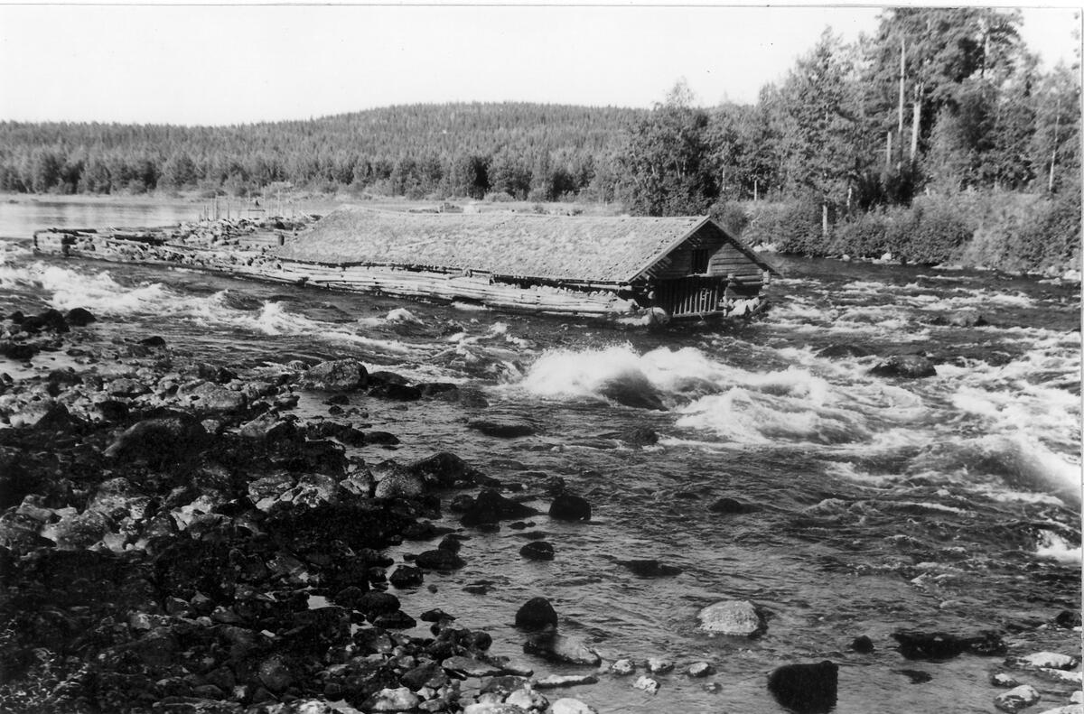 Fiskehus i järnvägsforsen vid sjön Alderns utlopp i Ljungan.