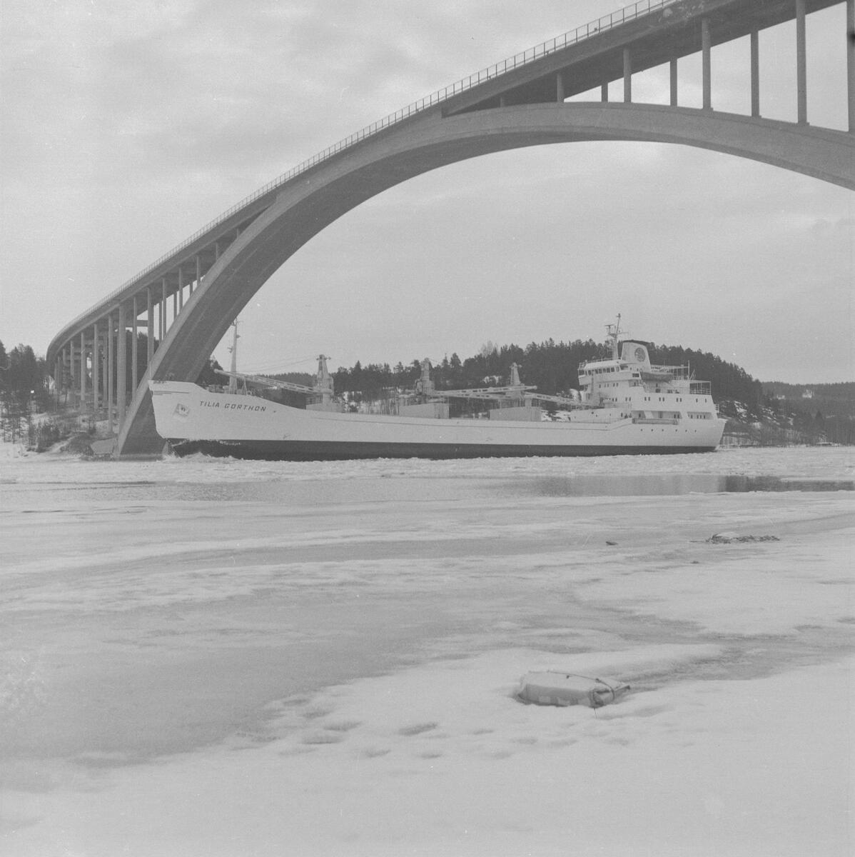 Titel: Fartyget Tilia Gorthon vid Sandöbron