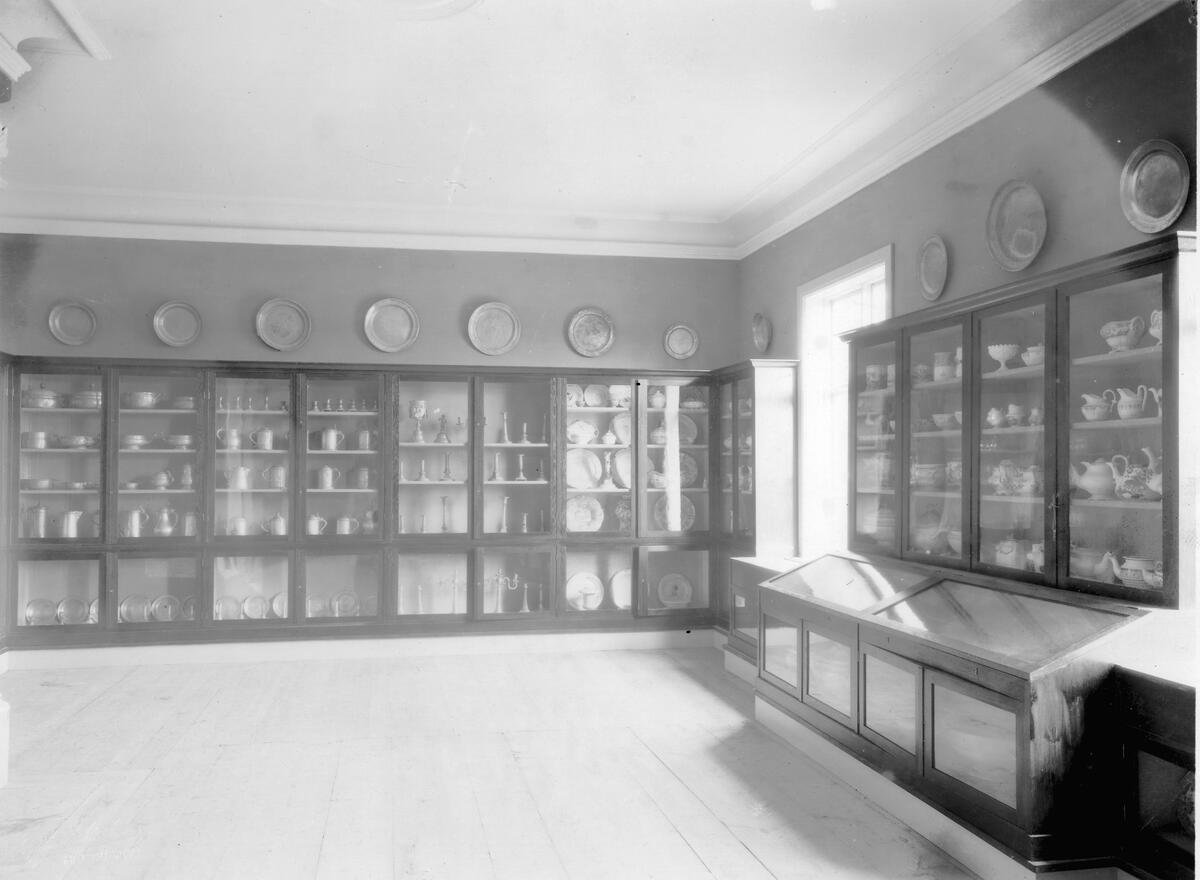 Utställning i rådhuset, utställning av föremål i porslin, silver, tenn.