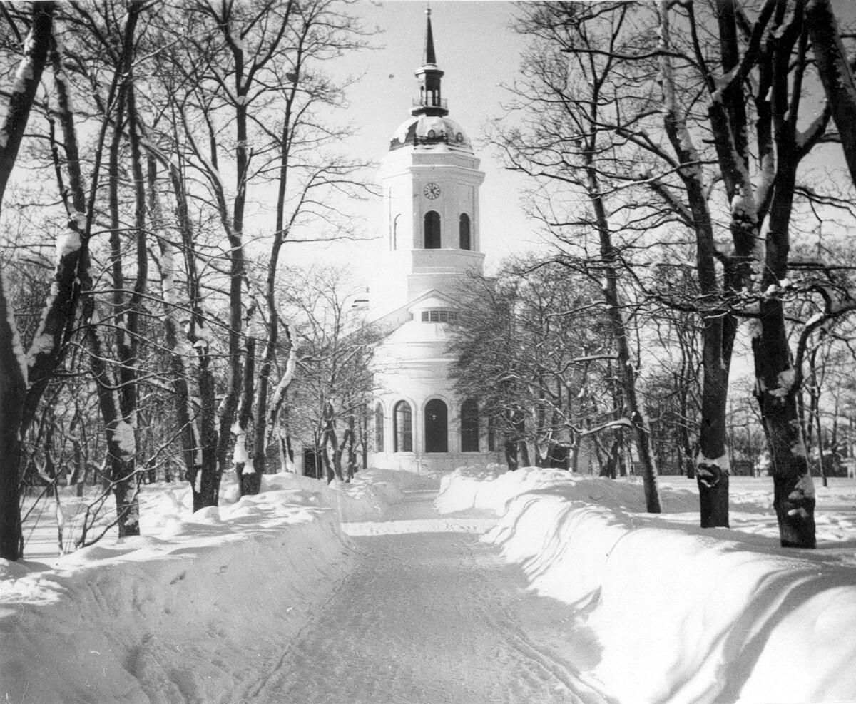 Domkyrkan, Härnösand. Arkitekt Johan Adolf Hawerman. Nyklassistisk stil. Vitputsad stenkyrka med ett mittorn, två mindre torn och västfasad med pelarrad.En del inventarier från den äldre kyrkan bland annat altartavlan från 1700-talet.Treskeppigt kyrkorum. Orgel från 1731 av Johan Caliman med barockfasad av Magnus Granlund från Hudiksvall
