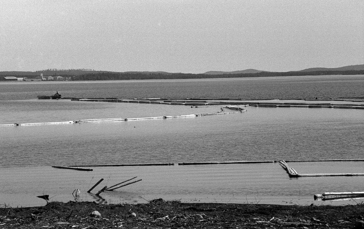 Bäckmyrviken. Rickard drar ihop fraktbommar med motorbåt