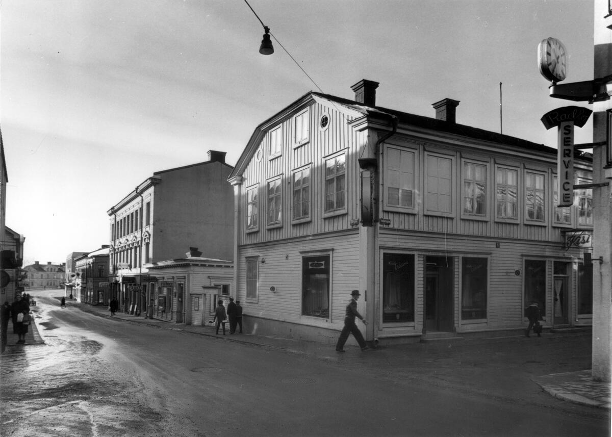 Hörnhuset och paviljongen på tomt nr 2 rivs hösten 1961. Taget från Storgatan mot SSV.
