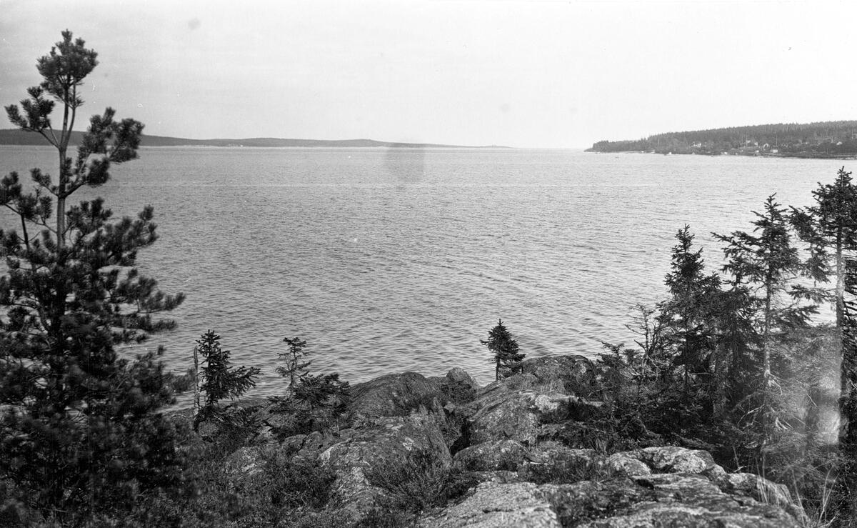 Utsikt från "Sven Dyring", Murbergsviken, mot SO. Strandpartiet mellan udden mot Murbergsviken och söderut mot det område där kolkajen och kolmilorna låg ska ha fått sitt namn efter ett fartyg, "Sven Dyring", som skall ha strandat eller gått på grund där.