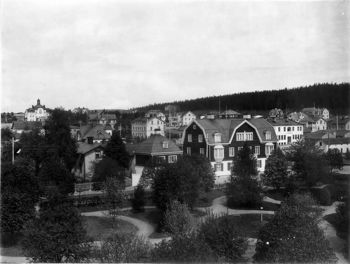 Titel: Utsikt över bebyggelsen mot rådhuset.