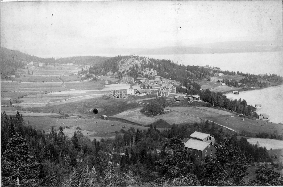Jordbruksbebyggelse. Av husgrupperna i fonden till vänster är den bakre Bäck 7:1 och den främre Bäck 1:14.