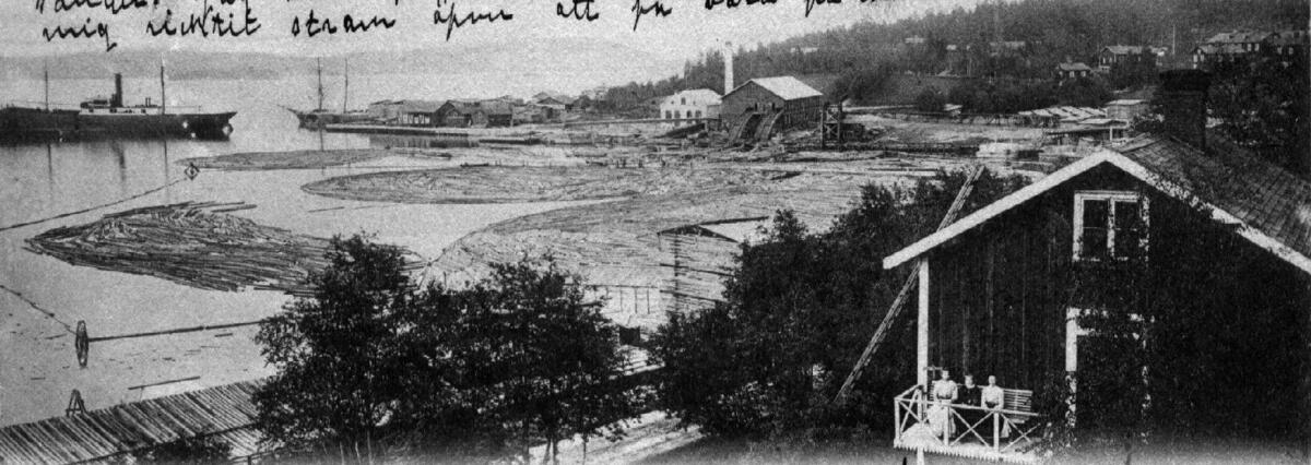 Ramviks sågverk, Ångermanälven. Brevkort poststämplat 1903.