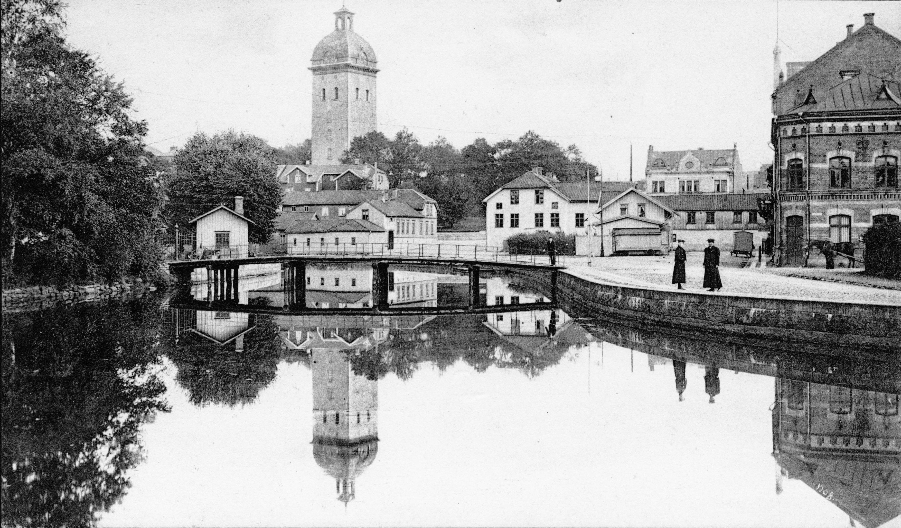 Kyrkan och dess omgivning från sydväst. Vykort.