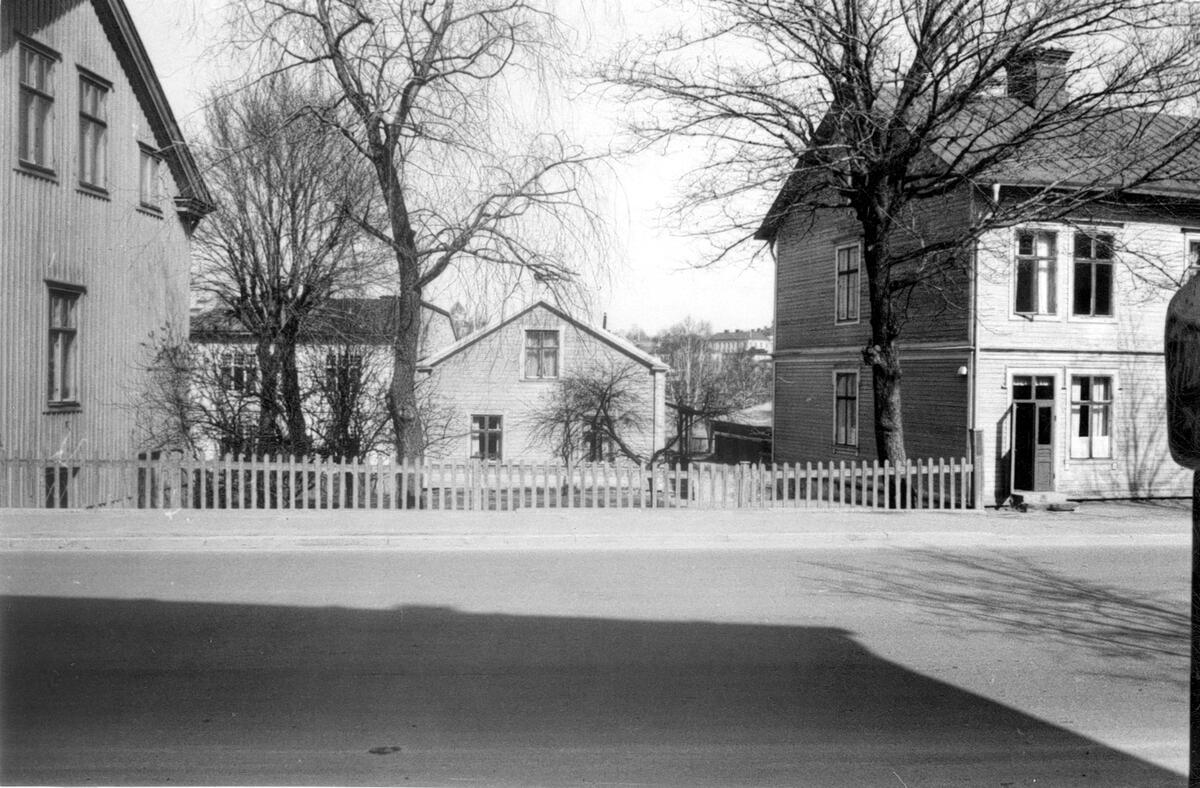 Bostadshus. Viktoriagatan i förgrunden, foto mot nuvarande landstingets tomt