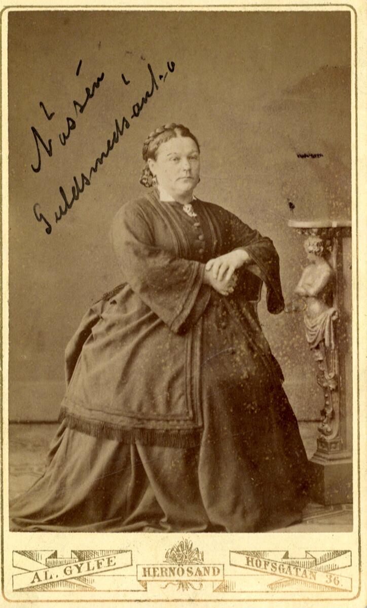 Guldsmedsänka Nässén. Bodde på Mellanholmen. Alexander Gylfes Fotografiska Atelier Hernösand Hofsgatan 36.