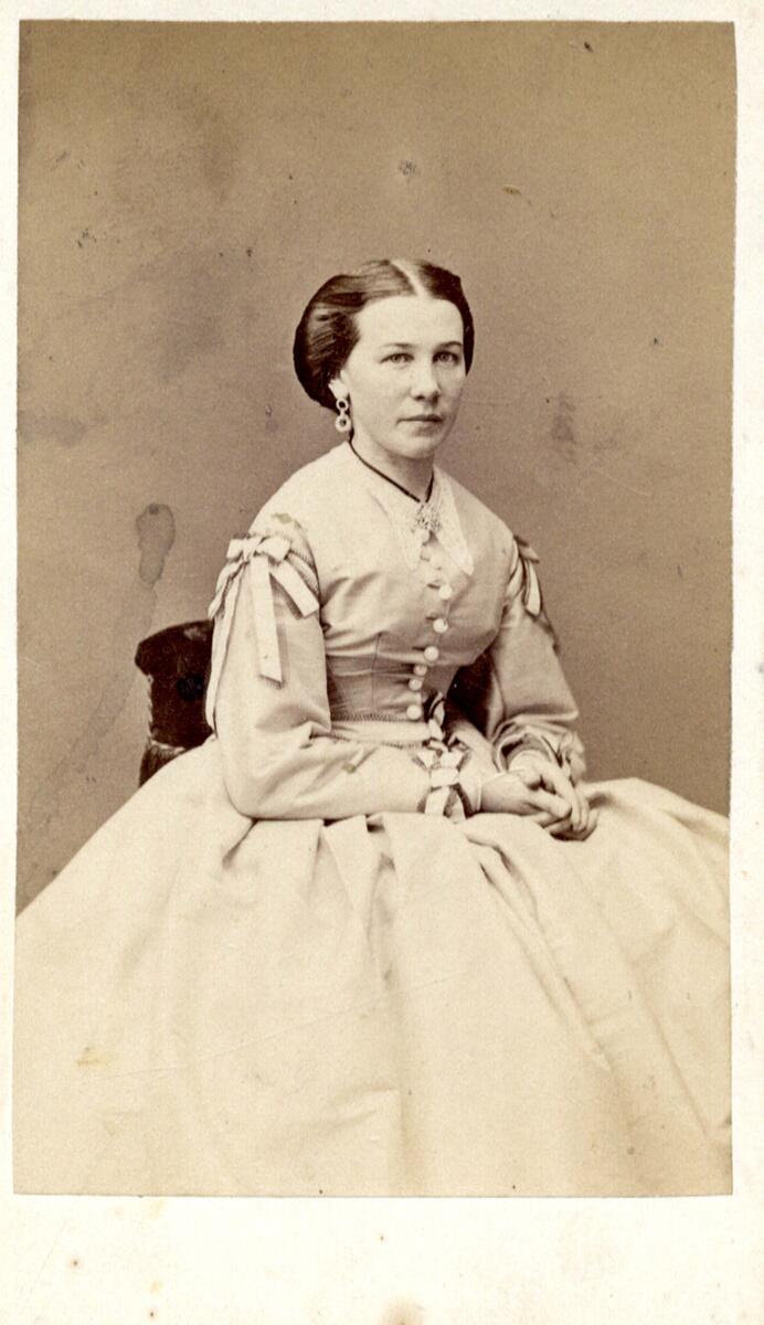 Mina Hägg, född Tjernberg född den 22/1 1841 Hernösand. August Roesler Stockholm Drottninggatan No 23 samma hus som Apotheket Morian.