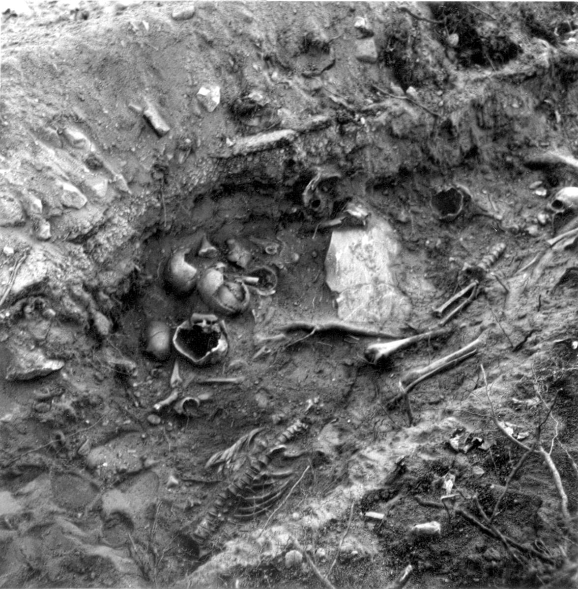 Gravar invid Domkyrkan. Grav öppnad under utgrävningen.