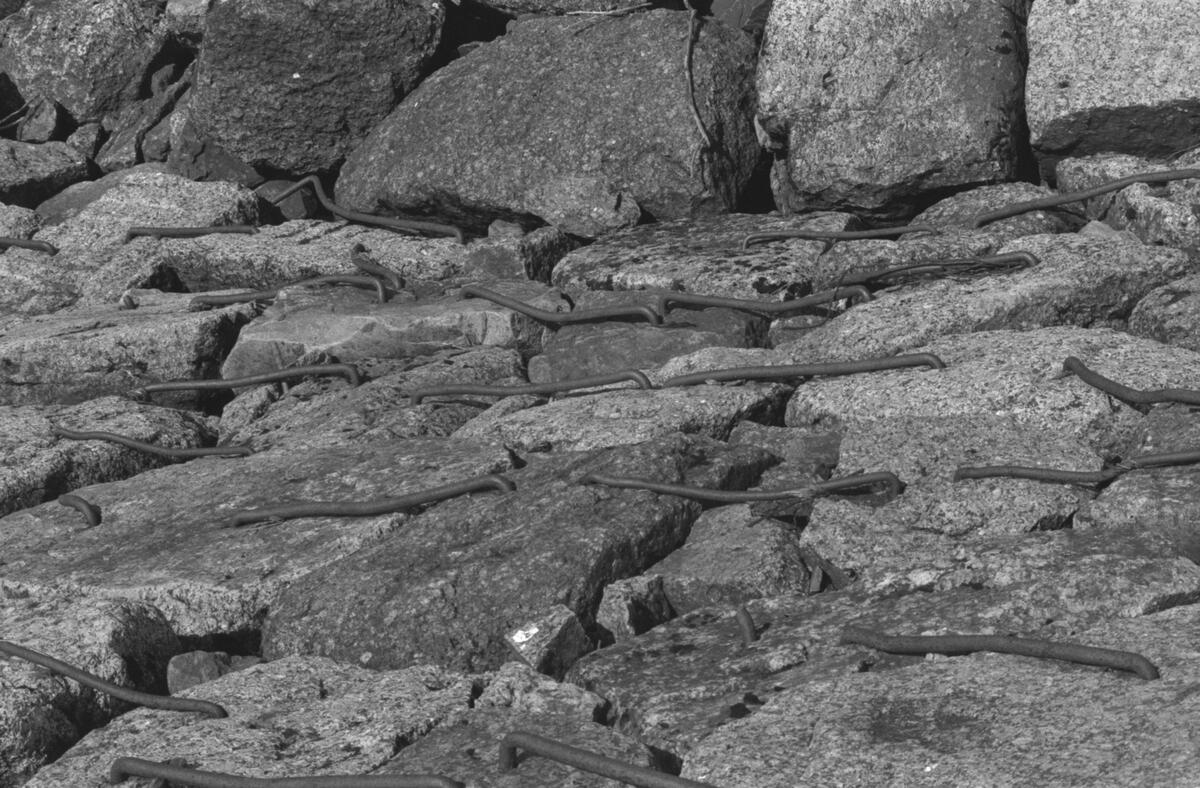 Gamla Lövön, nedanför. Detalj av stenlagd botten, stenarna fasthållna med rundjärn.