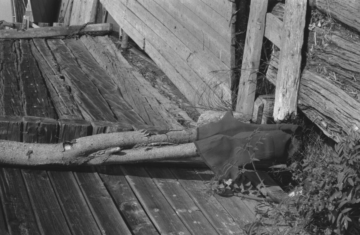 Fångsjön. Flottarkonst. Har stått i ca 10 år, stövlarna var torra och spröda.