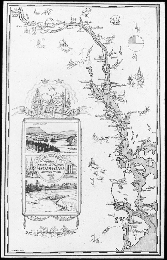 Karta över Ångermanälven Härnösand till Sollefteå turistleden
