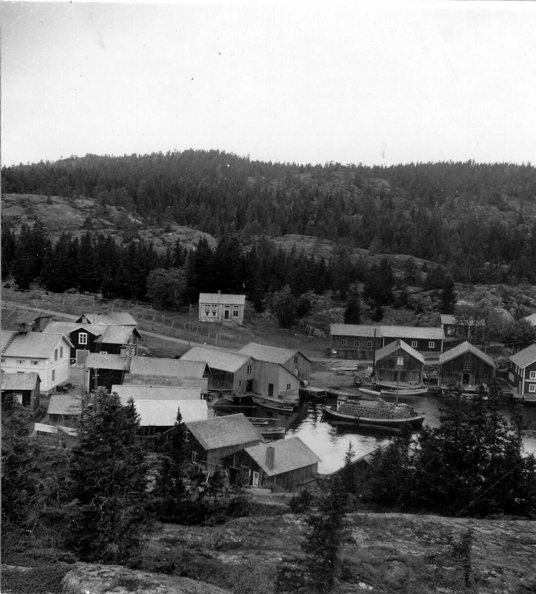 Titel: Bönhamn. Före detta säsongsfiskeläge som under århundranden spelat stor roll för Nordingrås näringsliv med bofast befolkning sedan 1700 talet. Stora sjöbodar och båthus kring hamnen och ovanför liggande bostadshus. Kapell från 1600 talet.