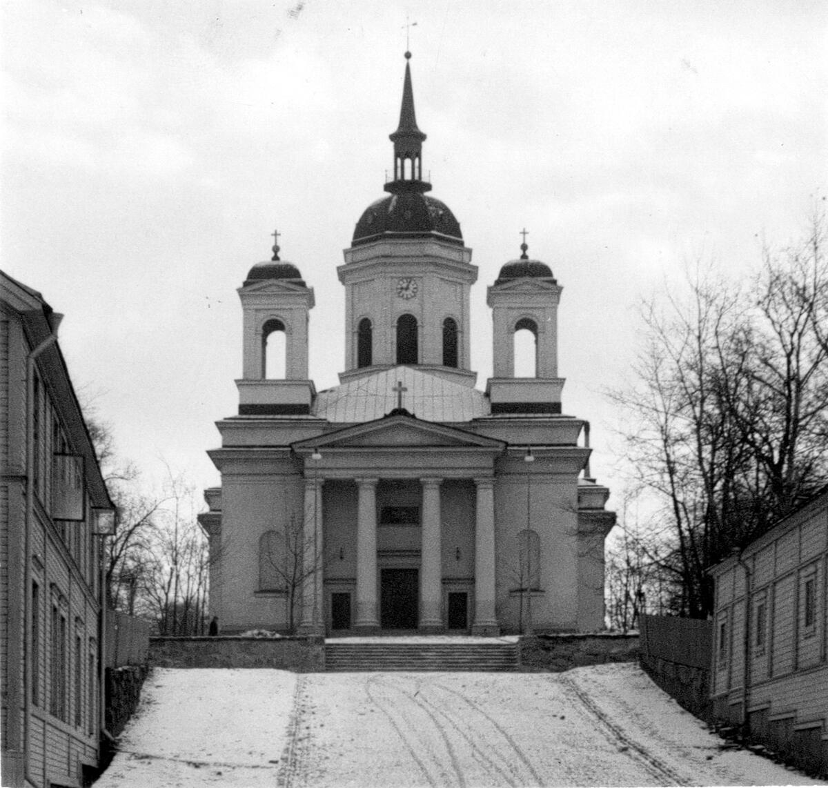 Härnösands domkyrka. Arkitekt Johan Adolf Hawerman.Nyklassistisk stil.Vitputsad stenkyrka med ett mittorn,två mindre torn och västfasad med pelarrad.En del inventarier från den äldre kyrkan blandannat altartavlan från 1700-talet.Treskeppigt kyrkorum.Orgel från 1731 av Johan Caliman med barockfasad av Magnus Granlund från Hudiksvall