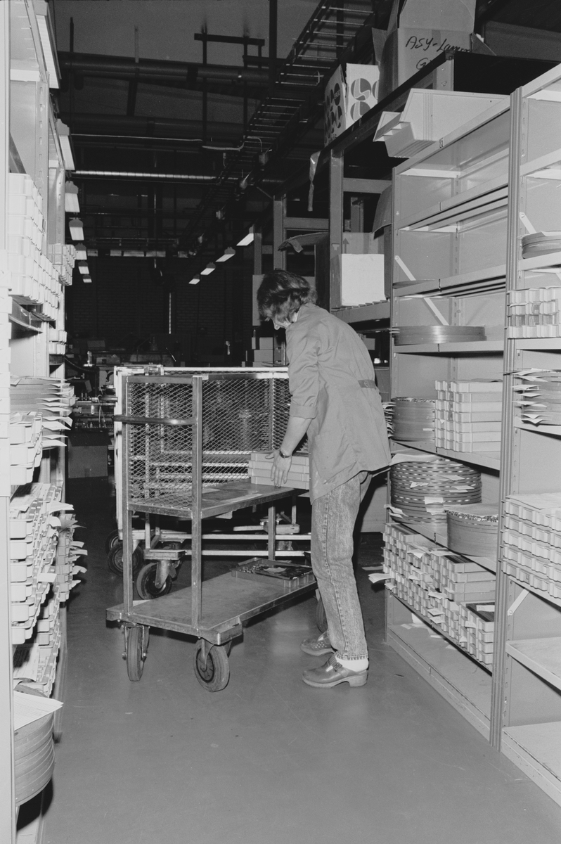 BLÄCKSTRÅLEMÄRKNING. Hämtar order från hyllplan. Lyfter över till transportvagnen som därefter skjutes fram till arbetsplatsen.
