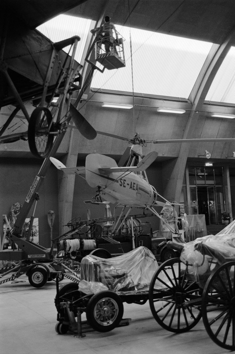 MASKINHALLENS UPPRUSTNING Nedtagning av autogiron. Uppe i skyliften Peter Häll. >>