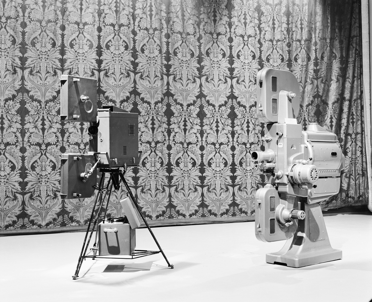 T.v. Philips ljudfilmsprojektor 35 mm, potabel. tillv. 1935. T.h. Bauer V2 ljudfilmsprojektor 35 mm och 70 mm film. Tillv. i 350 ex. 1959-68. Kolbågsljuslampa.>> Inför filmen 100 år gjordes en utställning "Magiska Bilder komik, erotik, optik" den 26 april - 12 jan 1997. Producerad av Svensak Filminstitutet i samarbete med Telemuseum och Tekniska Museet. Formgivning Mikaet Sylwan och Ulrika Wolff. Idé och koncept Anna-Lena Wibom.