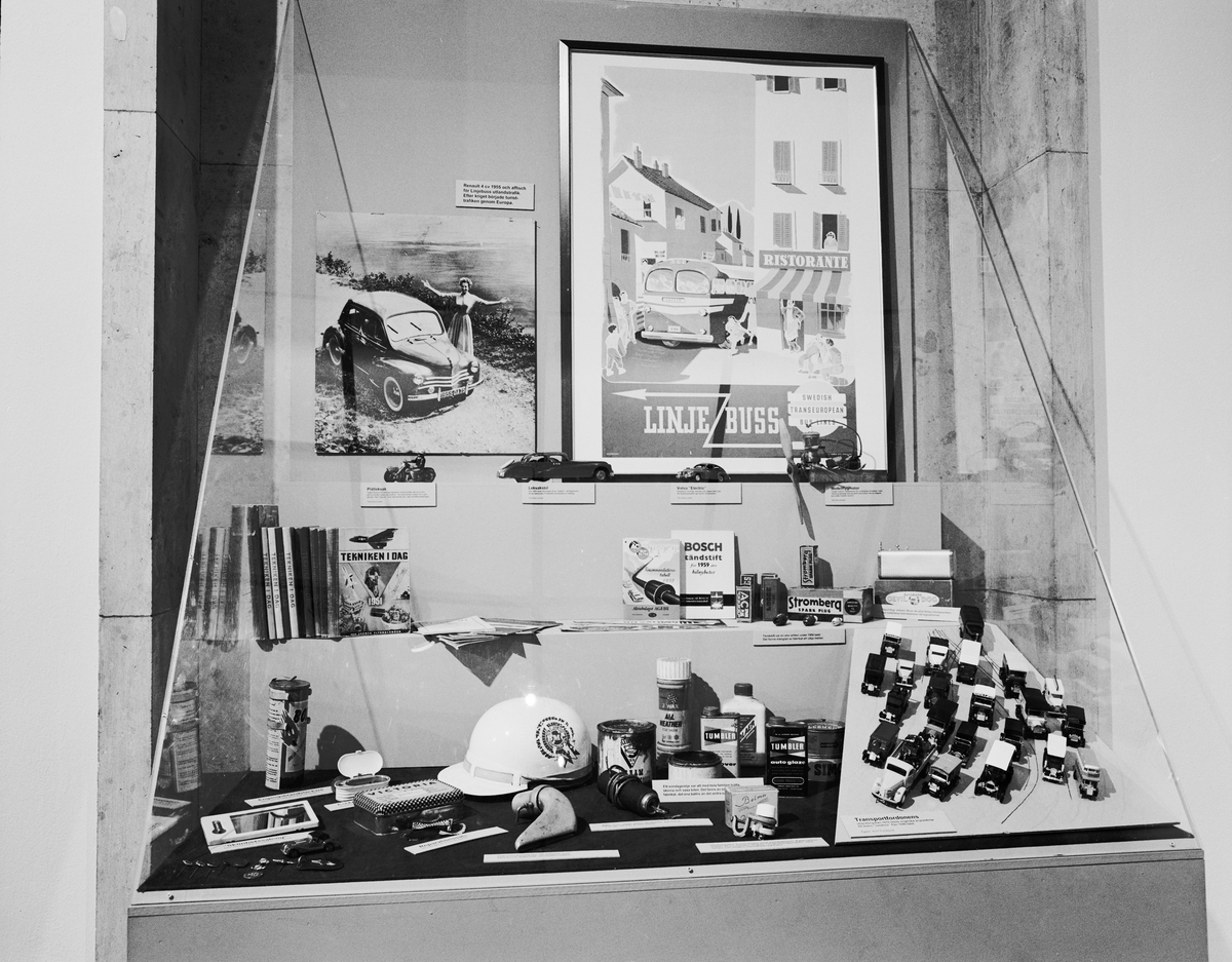 Dokumentation av "Automobilhistoriska klubben" utställningen, Sverige- salen. Böcker och biltillbehör från 50-talet.
