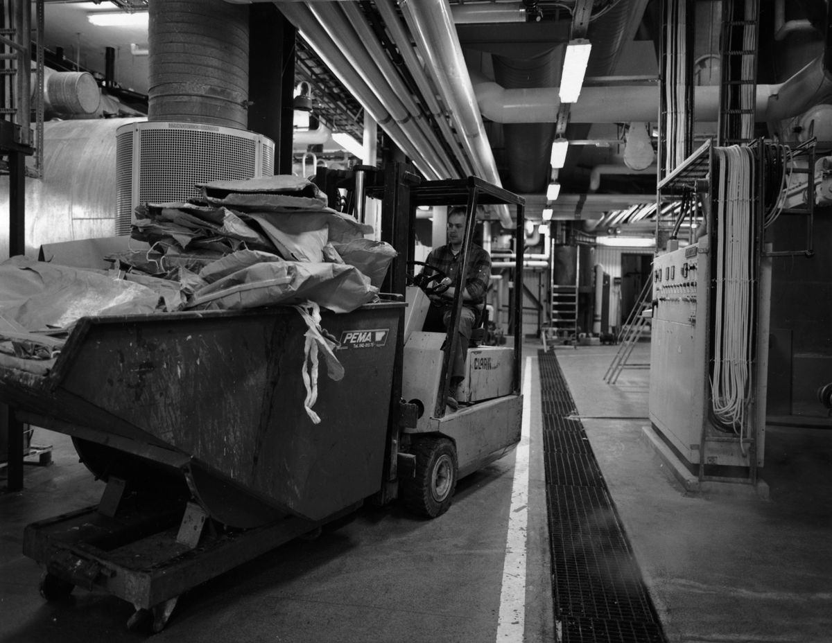 Patrik Holm kör säckar "Big Bug" för färdig tvålpellets.