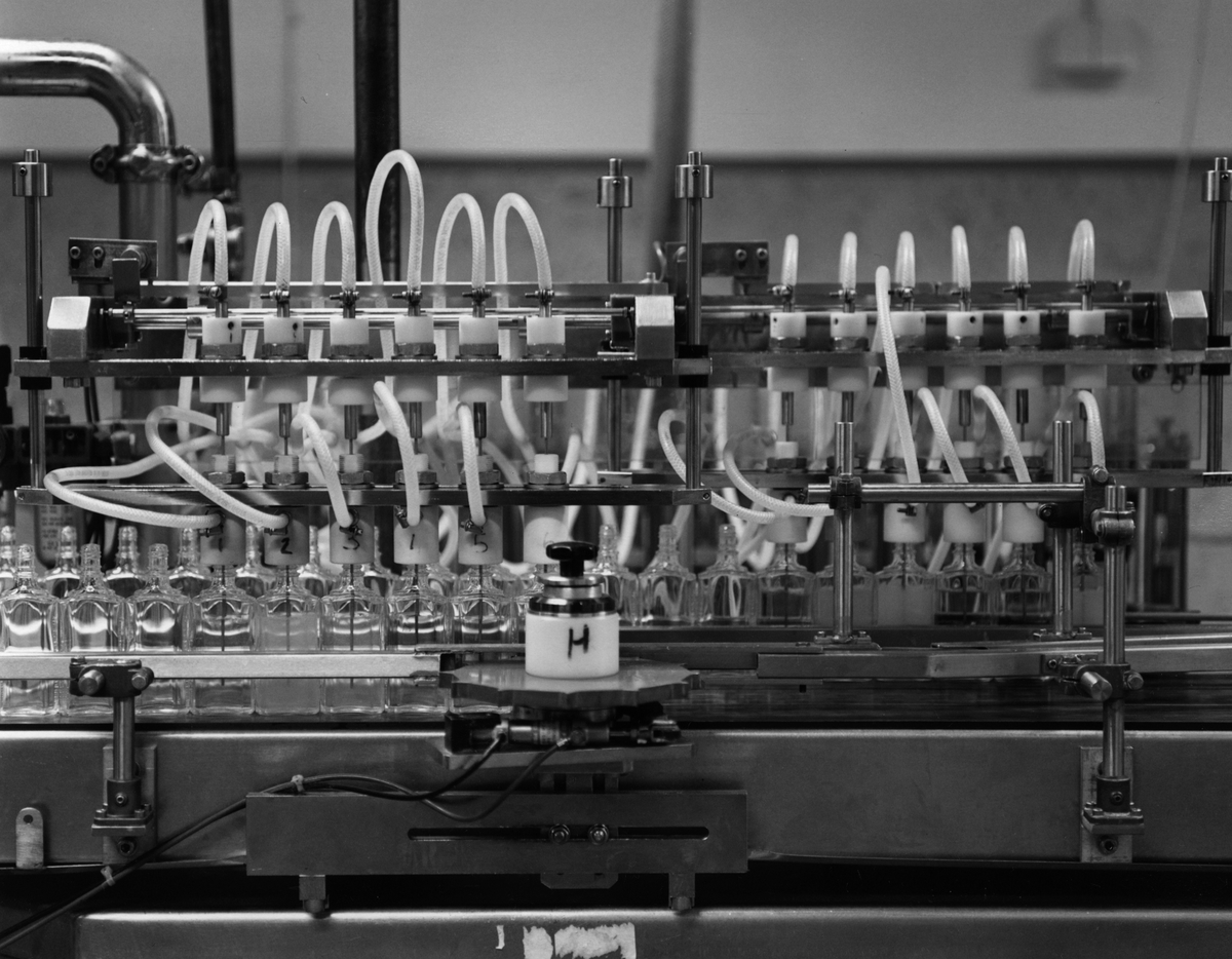 Fyllningsmaskin för Vademecum munvatten. Fyller 12 st flaskor i taget.